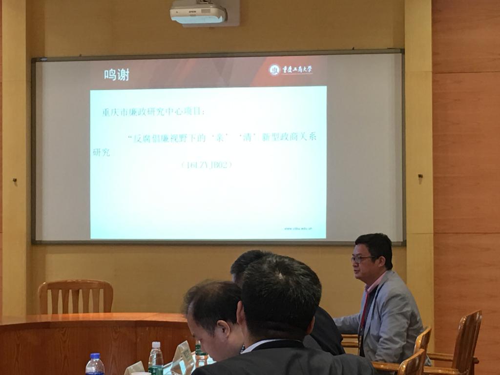 中心研究员马迅老师在分论坛“惩治腐败的境外经验探析”上作了题为《国际体育组织反腐败若干法律问题的初步思考》的交流发言,邬勇老师与陈艳宇老师在分论坛“公民参与和腐败治理”上分别作了《民国时期政商关系透视及其对当前反腐倡廉的启示-基于民生公司的研究》、《网络反腐的制度和技术创新》的交流发言,三位老师的发言受到与会者好评。中心参会人员在会上与来自全国各地的同行专家进行了广泛的沟通、交流和研讨。